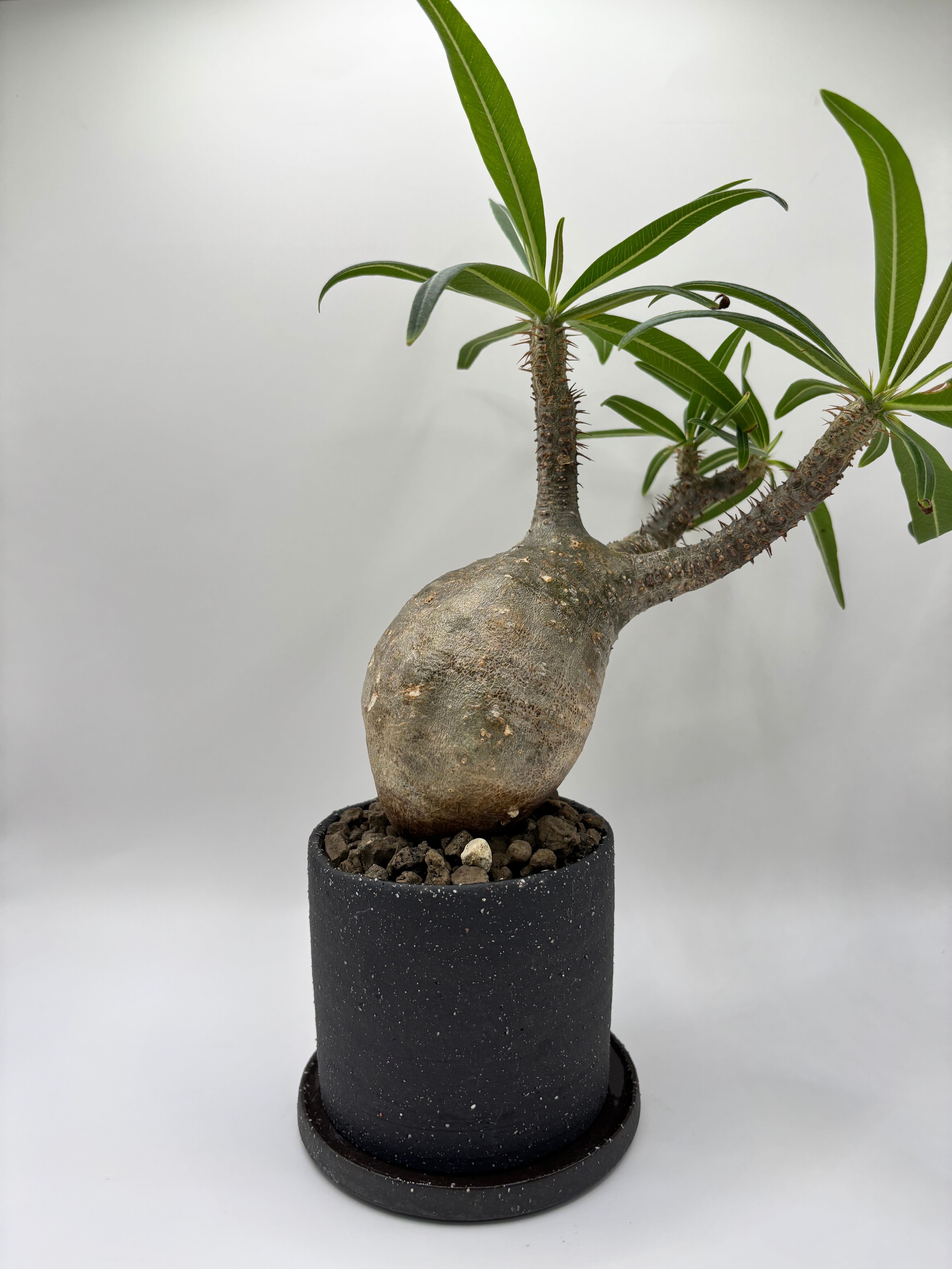 パキポディウム グラキリスは、優れた耐乾燥性を誇り、さまざまな環境で元気に育つことができます。そのユニークな姿勢は、インテリアに独特のアクセントを与え、見る人にリラックスした雰囲気を提供します。観葉植物としてだけでなく、インテリアの主役にもなれる存在です。